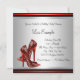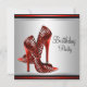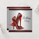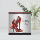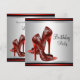 Invitaciones de cumpleaños de zapatos de tacón alto negro y rojo elegantes. Esta bonita invitación de cumpleaños de zapato de tacón alto de leopardo rojo se personaliza fácilmente para su evento simplemente eligiendo el botón "¡Personalízalo!" para comenzar a agregar los detalles del evento, el estilo de fuente, el tamaño y color de la fuente, y la redacción. Tenga en cuenta que todos los diseños de tarjetas e invitaciones que encontrará en Zazzle son gráficos impresos sin joyas reales, lazos, partes o piezas en relieve, estampadas o añadidas.