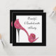 Adorable invitación de fiesta de soltera con zapato de tacón alto negro y rosa. Esta linda invitación de fiesta de soltera con zapato de tacón alto rosa y negro se personaliza fácilmente para su evento agregando los detalles del evento, estilo de fuente, tamaño y color de la fuente, y redacción.