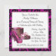 Invitaciones de cumpleaños de zapatos de tacón alto y leopardo rosa intenso de mujer. Caja de encaje rosa y negro elegante con rosas y perlas y zapatos de tacón alto de leopardo rosa. Estas invitaciones de cumpleaños funcionan bien para cualquier cumpleaños de niña o mujer o evento. Personalízalo para tu fiesta o evento simplemente eligiendo el botón naranja "¡Personalízalo!" para comenzar a agregar los detalles de tu evento, estilo de fuente, tamaño y color de la fuente, y la redacción en la parte delantera y trasera.