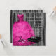 Elegante vestido de bola magenta rosa intenso y zapatos de tacón alto invitación de Quinceañera princesa con vestido y zapatos bonitos con tiara y almohada en un fondo brillante en blanco y negro. Esta invitación de fiesta de cumpleaños rosa intenso y negro se personaliza fácilmente para su fiesta o evento agregando los detalles de su evento, estilo de fuente, tamaño y color de la fuente y redacción. Puede mover o eliminar los zapatos y la almohada según sea necesario. Este es un diseño impreso sin purpurina real.