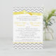 Patrón de zag o estilo chevron gris con invitación a una boda de color amarillo bonito.