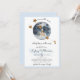 La invitación a la ducha de bebé en luna incluye luna y estrellas. Se puede elegir el signo de zodiaco para el mes de nacimiento. Reserva para bebés en la parte trasera con las fases de la luna y las estrellas.