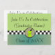 Las invitaciones elegantes de la graduación del farmacéutico, las sombras del verde con las letras negras y la maja y el mortero diseñan. "Únase a nos en la celebración". Delantero y trasero adaptables. *Graphics y diseño de Gail Gabel