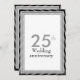 Aquí hay una invitación de moda para la fiesta del 25 aniversario de boda para hacer que el evento sea especial y memorable. Un borde plateado y negro con remolinos blancos añade un aspecto moderno y elegante a su invitación de aniversario de bodas de plata. La invitación se puede personalizar para cualquier aniversario: 10, 25, 30, 50, etc.