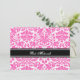 El Personalizado Bat Mitzvah invita al partido en un elegante y brillante diseño de damasco floral clásico rosa caliente, blanco y negro. Añada su nombre y detalles de fiesta para una invitación única y elegante del partido Bat Mitzvah.