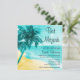 Playa de moda, invitación a Bat Mitzvah con palmeras y una estrella de David. Mostrado en tonos azul verde azulado y naranja. ¡Ideal para los amantes de la luau Bat Mitzvah! Personalice fácilmente con los detalles de su fiesta.