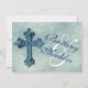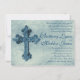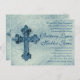 Según el tipo de papel que elija, el color puede ser azul o verde azul. El diseño de la cruz está a ambos lados de la invitación boda. Simplemente edite la plantilla con su propio texto de invitación a la boda.