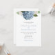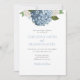 ¡Invitaciones nupciales de la hidrangea azul! Estas invitaciones serán perfectas para un boda floral moderno. Estas invitaciones incluyen hidrangeas de color azul pintadas con acentos verdes.