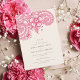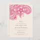 Celebre su día especial con esta moderna invitación de boda inspirada en la henna, que combina elegancia cultural con diseño contemporáneo. Con intrincados motivos florales y paisajistas en un vibrante matiz de fucsia, este diseño le da un toque fresco y audaz al arte tradicional de la henna. La crujiente tipografía serif, combinada con elegantes acentos de escritura, destaca los nombres y detalles bodas de la pareja con una sofisticación intemporal. Perfecto para bodas tradicionales indios, ceremonias de fusión o vibrantes celebraciones culturales, esta invitación está impresa en un material texturado de alta calidad, ofreciendo una experiencia táctil de lujo. Totalmente personalizable, está diseñado para reflejar su estilo único y honrar las tradiciones culturales.