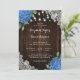 Incursiones de boda rusticas de hortensias azules inspiradas en flores de horangea azul sobre un fondo rústico de madera y encaje.