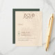 Carta de gabinete RSVP con invitación a bodas texturadas rusticas con detalles de trigo y flor. El texto incluye: acepta o rechaza alegremente junto con el espacio para restricciones alimentarias.
