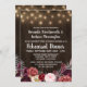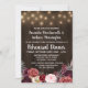 El Rustic Peony Marsala Rehearsal Dinner Invitation ofrece un fondo rústico de madera de pino con luces de cuerda. En la parte inferior se encuentran varias flores de color agua elegantes, rosas y elementos florales en tonos grises, rosas, burdeos, enológicos y de Marsala. Vea la colección encontrada en esta página para ese elemento y también para ver los diseños completos de productos coincidentes para completar el evento.