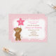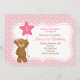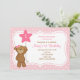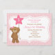 Invitación de oso dulce para chicas de fondo rosa. Para el primer cumpleaños o la ducha de bebé.