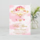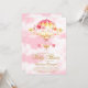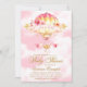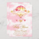 Globos de aire caliente invitaciones a la ducha de bebé con globo de aire caliente de color rosa y dorado con pancarta floral sobre un fondo de nube rosa y blanca. Esta hermosa invitación a la ducha con globo aerostático rosa y dorado se personaliza fácilmente para tu evento simplemente añadiendo tus detalles. También puedes cambiar el color de fondo de esta invitación a la ducha de bebé con globo de aire caliente.