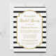 Invitaciones personalizadas a la ducha de novias con rayas clásicas en blanco y negro y rayas doradas vintage y texto. Personalizable con tu texto.