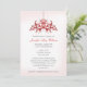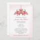 Invitaciones personalizadas para ducha de novia con una lámpara de araña roja sobre un fondo rosa y blanco. Personalizar completamente esta invitación a la ducha de novia haciendo clic en "personalizar" para más opciones de tipos de letra y colores de letra que se pueden encontrar en la lista desplegable "editar" para la selección de color de la fuente.
