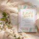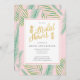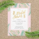 Elegantes y modas invitaciones a la ducha de nubes tropical. Con frondas verdes de palma, acentos rosas y un falso texto dorado "Bridal Shower" con piñas. Nota: los elementos metálicos se imprimirán para que parezcan Relieves metalizados de oro, pero las invitaciones no contendrán Relieve metalizado de oro, purpurina o tinta metálica.