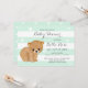 Una simple y bonita ducha para bebés invita al oso marrón y a los corazones blancos sobre un fondo de menta y rayas blancas. Personaliza con tu detalle de invitación en gris. Neutral en color, perfecto para el niño o chica. Utilice el botón personalizar/personalización (o enlace) para cambiar el estilo de fuente, el tamaño y el color.
