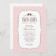 Dos invitaciones a la ducha chica con un diseño elegante de rayas chevron marrón, blanco y rosa. Personalizar el texto con la información de la ducha. Obtenga una vista previa de cómo se verá la invitación final en la pantalla antes de realizar el pedido.