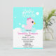 Una invitación a los chicas con un pato de goma rosa y un fondo azul y blanco para bañarse en una ducha de patos de goma. Personalizar con los detalles de la ducha usando nuestro sencillo patrón.