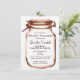 Impreso en papel ambiental. Estas rústicas invitaciones a la ducha de novias con jarros de carmín son perfectas para una novia de campo. Un frasco rústico de conservas es el fondo. Añade tu propio texto de ducha de novia a la plantilla.