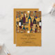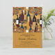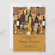 Hermosa y moderna invitación al vino para degustación de duchas de novias con hermosas obras de arte doradas con una variedad de botellas de vino, tipos y elegantes vidrieras.