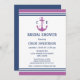 Invitaciones a la ducha de novias de color púrpura y azul marino con ancla de corazón monograma.