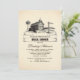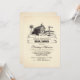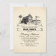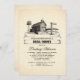 Vintage rústica invitación a la ducha de novias con casa de campo - casa de campo y rústico paisaje de campo con árboles, barriles, bosques y señales de carretera de madera con las iniciales de novia y novio escritas junto con la fecha boda. Invitación perfecta para una ducha rústica de novias en el granero.