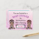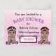 Aquí hay lindas invitaciones de bebé mellizas dibujadas a mano, Baby Shower. Personalice estos datos agregando la información de su fiesta en el área personalizada. Fondo rosa con un lindo chica gemelo en cada esquina. Estas invitaciones con tarjeta postal son una forma muy asequible de recibir invitaciones personalizadas prefabricadas para una ducha de bebé. Estas niñas pequeñas representan bebés afroamericanos.