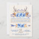 Invitaciones tribales a la ducha de bebé con colgaduras de color agua rústicas y flecha sobre un fondo de madera. Estas invitaciones tribales a la ducha de bebé se personalizan fácilmente para tu evento simplemente añadiendo tus detalles.