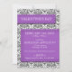 Invitaciones modernas y modernas para su fiesta o reunión El día de San Valentín. Presenta un diseño/ilustracion púrpura sobre un patrón de damasco blanco y negro. En la parte posterior (opcional) puede imprimirse información o instrucciones adicionales del fiesta.