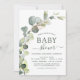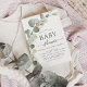 Presupuesto Eucalyptus Greenery Suculent Botanical Watercolor Primavera Género Neutral Baby Boy o Baby Girl Shower Invitaciones sobre fondo blanco - incluye hermosa y elegante tipografía de escritura con hojas botánicas modernas y vegetación para la celebración especial de Madre a Ser.