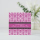 Personalizado 21 invitaciones a fiestas de cumpleaños en elegante y brillante color fuchsia rosa, negro y blanco clásico de damasco floral. Añada su nombre y detalles de fiesta para una invitación única y elegante para una fiesta de cumpleaños.