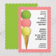 Divertidas invitaciones creativas para fiesta de tenis con pelotas de tenis coloridas como bolas de helado.