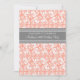 Personalizado 80 Aniversario de la fiesta en elegante color rosa coral melocotón, gris y blanco clásico de adamascado floral. Añada su nombre y detalles de fiesta para una invitación única y elegante a la fiesta de cumpleaños.