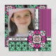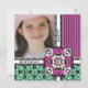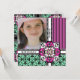 La bella invitación al marco fotográfico se adapta a cualquier ocasión. Vibrante fucsia rosa y verde (fondo verde personalizable). Patrón original de damasco y motivo ornamental de Damasco Divino.