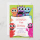 Empieza tu fiesta de cumpleaños con nuestra brillante, audaz y linda invitación de cumpleaños monstruosa con los monstruos más pequeños en naranja, púrpura, azul, rojo y rosa sobre un fondo verde lima con puntos de polka. Es ideal para una primera fiesta de cumpleaños de chicas o para los primeros chicos. Visita nuestra tienda para ver otras invitaciones para fiestas de cumpleaños y notas de agradecimiento, pegatinas y sellos postales. © diseños Babystar