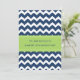Personalizado 30 Aniversario invitaciones a fiestas en un elegante y moderno azul marino oscuro, verde lima brillante, y blanco diversión y casual chevron zigzags estripes. Añada su nombre y detalles de fiesta para una invitación única y elegante para una fiesta de cumpleaños.
