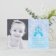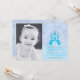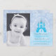 Invitaciones personalizadas a la fiesta de cumpleaños de la princesa con la foto del chica de cumpleaños. Un castillo de princesa de invierno congelado con "Érase una vez, en una tierra lejana..." y luego el nombre de la princesa y la edad que le da la vuelta impreso abajo, junto con todos los detalles del fiesta.