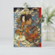 Invitaciones de Kuniyoshi Samurai. Bloqueo de madera Ukiyo-e de Edo Period Japan. Utagawa Kuniyoshi diseñó algunas de las pinturas samurai más vibrantes e impresionantes del periodo Edo. Su representación de Shimamura Danjo Takanori muestra a los samurai con armadura completa blandiendo su naginata mientras montaba las olas del mar sobre las espaldas de dos cangrejos azules. El samurai ha sido golpeado por múltiples flechas, pero lucha ferozmente con olas y cangrejos subiendo en el fondo. Un gran regalo para los aficionados a Utagawa Kuniyoshi, pinturas de samurai y arte japonés.
