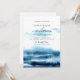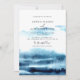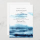Invitaciones a la boda acuarela moderna. Los elegantes tonos azules combinados con un diseño minimalista y toques personales crean un ambiente sofisticado y formal.