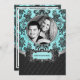 Invitaciones de foto de Boda azul Damask negro: coincide con las tarjetas RSVP y la suite completa que se encuentra en la parte inferior de esta página. Personalizar este estilo de invitación con su propia fotografía personal siguiendo los consejos que se encuentran abajo. Cada invitación incluye una elegante lámpara de araña (damasca en negro y azul piscina) en la parte superior con una lujosa almohada, también en negro en la parte inferior. La mitad superior e inferior están separadas por una banda ornamental de color negro y plata para un toque adicional. La banda tiene una plantilla que permite imprimir los nombres del novio y la novia encima. Estas invitaciones a bodas de damasco negro/candelabro azul de piscina están fijadas a un material básico de tarjetas de alta calidad; sin embargo, puede cambiar el material a lino, fieltro (grabado en relieve), reciclado y varios matices metálicos si desea bajo el número 2 (elija su estilo, tamaño y tipo de papel) debajo del botón naranja añadir al carro. También se muestra en esa opción una lista de los costos adicionales de las existencias de tarjetas más elegantes. Cada invitación incluye un sobre blanco.