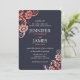 Elegantes invitaciones de Coral y Bodas Azules con una hermosa huella floral. Colorful Designs Inc. Copyright 2014-2016