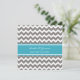 Tarjetas de invitación de matrimonio en gris carbón elegante y contemporáneo, retro azul y blanco verde azulado y patrón casual de zigzags chevron. Personalizar estas invitaciones con los detalles de su boda. Disponible en productos de coincidencia para todas las necesidades de su boda.