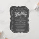 Elegante Chalk Board Die-cut Wedding Invitaciones — Flores dulces, risas, elegantes y hermosa tipografía retro estilo victoriano hace una atractiva invitación a la boda en blanco y negro. Sólo tienes que añadir los nombres de novias y novios e información de bodas en esta plantilla fácil de usar. Inspirado en el poster vintage de pizarra de finales del siglo pasado, este nuevo estilo presenta columpios ornamentales, remolinos y banderas con cuadros de letras dibujadas a mano en la pizarra gris de carbón. El texto de la invitación personalizado es una hermosa mezcla de estilo clásico de la tipografía con letras de escritura decorativas que se pueden hacer aptas para el tema formal o semiformal. Un estilo moderno clásico pero elegante es perfecto para bodas contemporáneos de moda con un toque rústico sofisticado pero romántico para las parejas tradicionales. Póngase en contacto con nosotros para obtener ayuda sobre la personalización si necesita espacio adicional para los detalles de su boda. Otros tamaños y estilos disponibles, junto con sellos postales a juego, coordinando la papelería de novias, accesorios de paquetes de boda y favores de ducha. © March 2014 Boda Trendy. Los elementos dentro de este diseño han sido licenciados para uso comercial — todos los derechos están protegidos por las leyes de derechos de autor de Estados Unidos e Internacional y no pueden ser reproducidos o publicados sin permiso o consentimiento previo de los artistas originales y/o sus agentes de licencias.