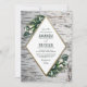 Invitaciones a la boda rústica de Birch Tree Woodland - presenta un fondo rústico de corteza de árbol de abedul con elementos florales de helecho, flores solteras de lirio calla, aliento del bebé, hojas y más. El cuadro de texto es un elegante triángulo con un falso marco impreso en oro de Relieve metalizado.