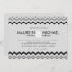 Diseño zigzag gris y negro moderno invitaciones a la boda con ampersa blanca y simple tipografía minimalista moderna. Personalizar su propio texto o uso fresco y único tal cual. Cambie el color y el estilo de la letra, el color de fondo, la elección del papel o mueva los zigzags del diente de sierra para crear más espacio si es necesario.