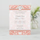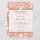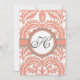 PEACH Victoria Vintage Damask Boda Sello Coral & Gray Damask Wedding Invitación mostrada en Tarjeta redonda pero puede elegir Tarjeta cuadrada.