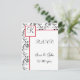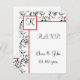 Menos fue la idea detrás de estas invitaciones a la boda de monograma Red Black Damask y parece funcionar con el patrón de moda y el monograma cuadrado de esquina .