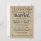 Coma, bebe y cásate — Viñetas rústicas de campo estilo vintage invitaciones a bodas — Deslizamientos rápidos y ondulados y tipografía de moda antigua sobre fondo natural de tela de crema beige de trigo. Añade los nombres de novias y novios e información de bodas en esta plantilla fácil de usar. Elegante pero divertida y caprichosa caligrafía de estilo de pizarra retro puede ser modificada para su tema formal o semiformal de boda. El moderno estilo informal es perfecto para bodas contemporáneos de moda con un toque divertido de encanto sofisticado para las parejas tradicionales. Póngase en contacto con nosotros para obtener ayuda sobre la personalización si necesita espacio adicional para los detalles de su boda. Otros tamaños y estilos disponibles, junto con la coordinación de franqueo, accesorios de novias, favores de ducha, y bodas de lujo esenciales para novias diy con un presupuesto.NOTA Se muestra en tarjetas de invitación de tamaño pequeño 4.5 x 6.25.